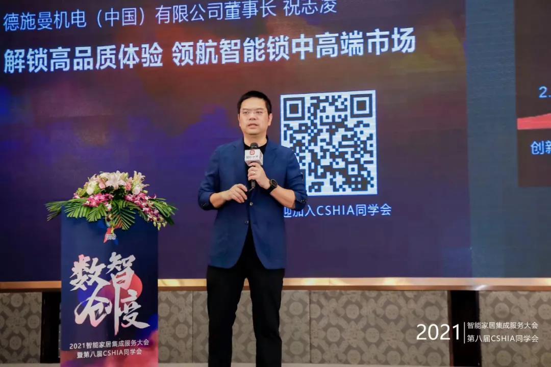 10月27日,2021智能家居集成服務大會暨第八屆CSHIA同學會在上海圓滿落幕。本屆大會以“數智·創變”為主題,廣泛匯聚了智能家居業界優秀品牌與區域集成服務力量。德施曼董事長祝志凌攜年度新品月光寶盒Q8FPro等產品受邀出席了本次會議,并發表《解鎖高品質體驗,領航智能鎖中高端市場》主題演講,與千余位智能家居領域專業觀眾,共同聚焦智能家居生態新趨勢。
