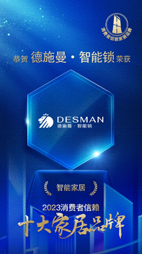 本次評(píng)選以“家居行業(yè)高質(zhì)量發(fā)展,扎實(shí)推進(jìn)優(yōu)質(zhì)品牌建設(shè)”為宗旨,圍繞當(dāng)下眾多家居品類(lèi)、千余主流家居建材品牌,通過(guò)對(duì)“產(chǎn)品品質(zhì)、服務(wù)質(zhì)量、消費(fèi)口碑、品牌影響力”四大維度進(jìn)行專(zhuān)業(yè)評(píng)審,以此評(píng)選出消費(fèi)者心目中的優(yōu)質(zhì)家居品牌。德施曼智能鎖從千余品牌中脫穎而出,榮膺本次“2023消費(fèi)者信賴(lài)十大家居品牌”稱(chēng)號(hào)。