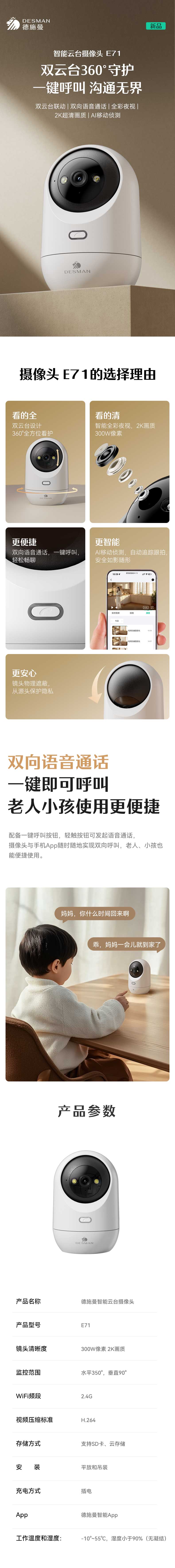 德施曼智能云臺攝像頭E71